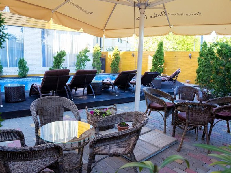 Благоустроенная территория, открытый подогреваемый бассейн, кафе, парковка возле корпуса, Wi-Fi на территории и в номерах, детская площадка.