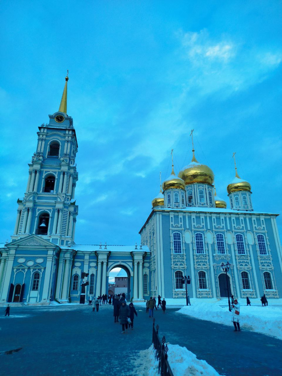 Тульский Кремль – выдающийся памятник русского оборонного зодчества, сохранивший свой первозданный облик. Почти полтора века он был важной крепостью на южной границе Московского государства, центром Засечной Черты и надёжно охранял рубежи от набегов кочевников. Настоящим украшением Кремля стали златоглавый Успенский собор и Богоявленский, возведенный как памятник тулякам – участникам Отечественной войны 1812 года. А также жемчужина Соборной площади – нарядная четырёхъярусная колокольня, в стиле московского барокко, увенчанная высоким позолоченным шпилем, с часами наверху.