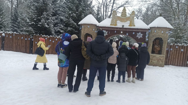 По желанию за доплату (1000 руб. взрослый; 700 руб. школьник) посещение Поместья белорусского Деда Мороза (ВЫХОДНОЙ ДЕНЬ - ПОНЕДЕЛЬНИК), которое принимает гостей круглый год. Поместье включает в себя Дом Деда Мороза с мастерскими, домик Снегурочки. На входе гостей встречают два рыцаря: Дуб-Дубович и Вяз-Вязович. Вас проведут по аллее сказок, где представлены скульптуры сказочных героев (Двенадцать месяцев, Аленушка и братец Иванушка, Емеля, Белоснежка и семь гномов и многие другие сказочные персонажи). Есть в царстве Деда Мороза ветряная мельница, перемалывающая плохие поступки, волшебный колодец. Каждый посетитель получает сувенир от самого Деда Мороза.