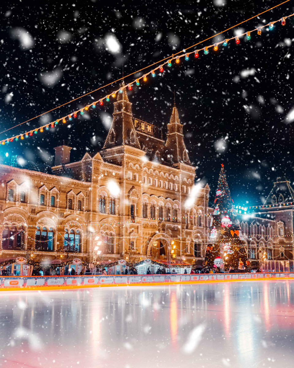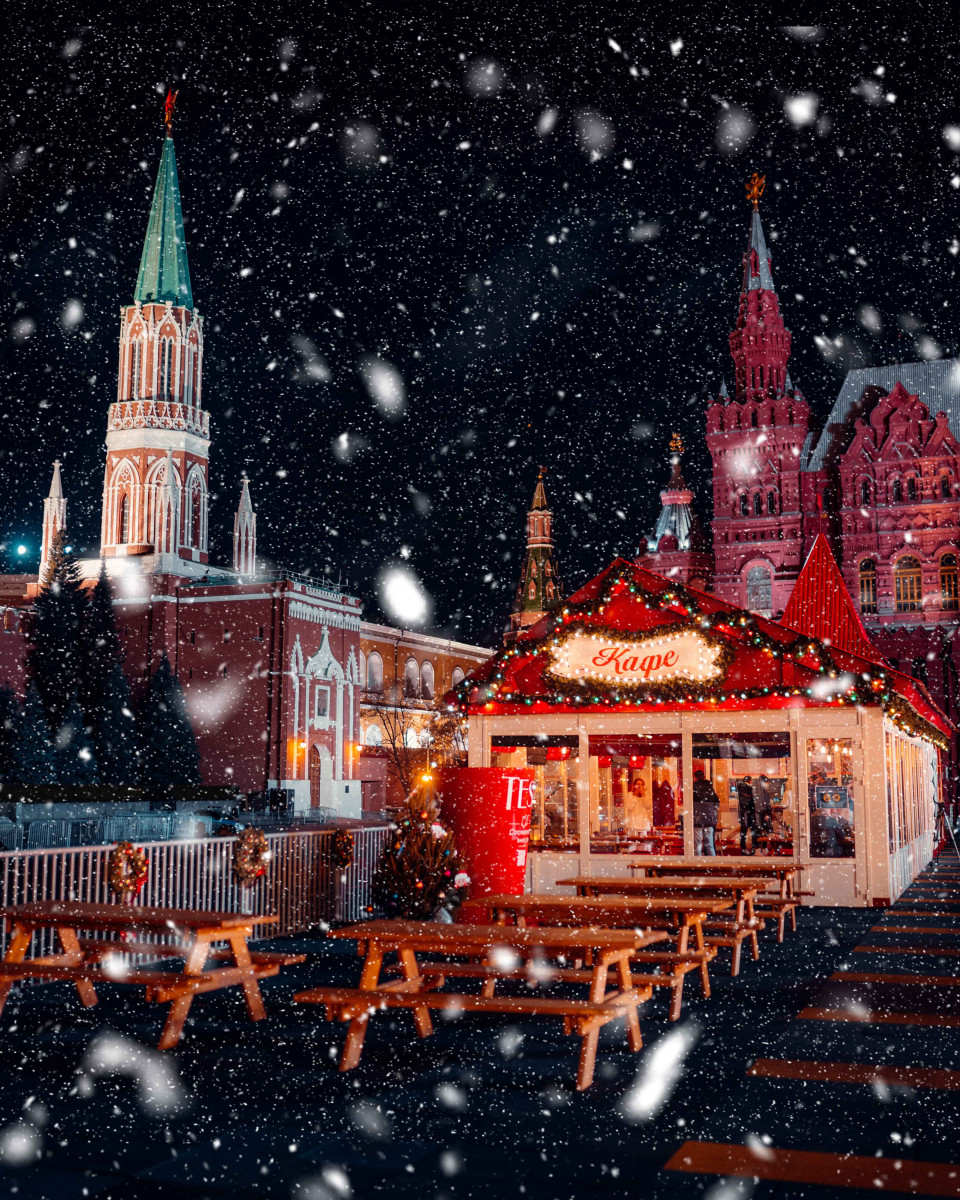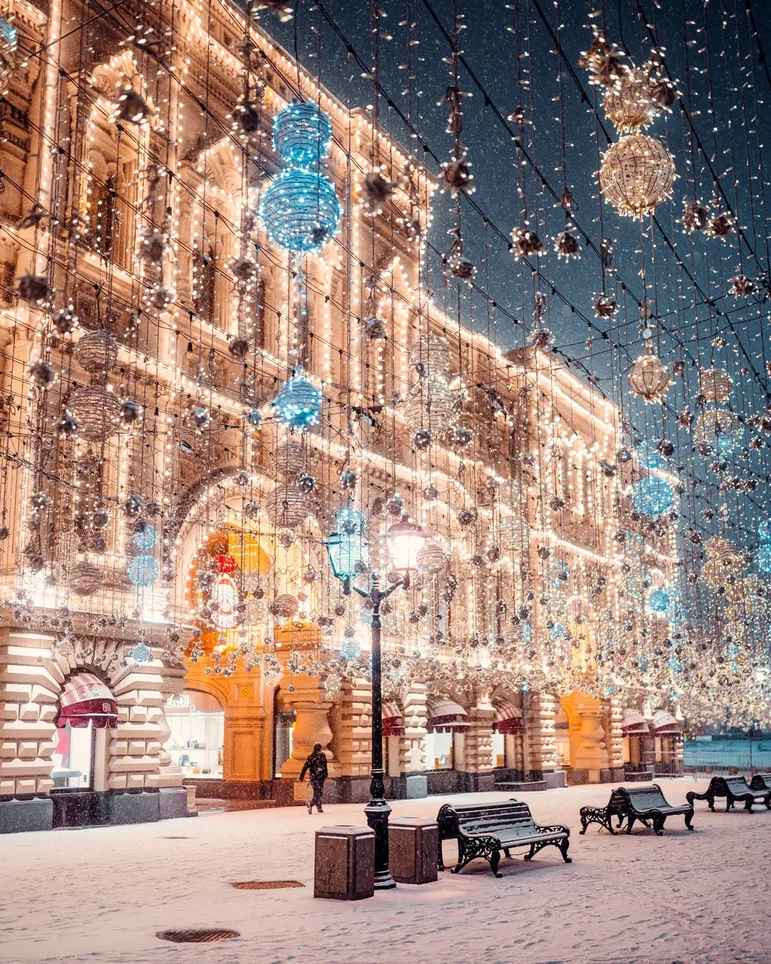 Погуляете по Театральной площади- новогодней площадке Москвы, где устанавливается большая новогодняя ёлка, по Парку «Зарядье» - это первый крупный парк, созданный в столице за последние 50 лет. Его уже окрестили «новым сердцем Москвы», Александровскому саду и др.